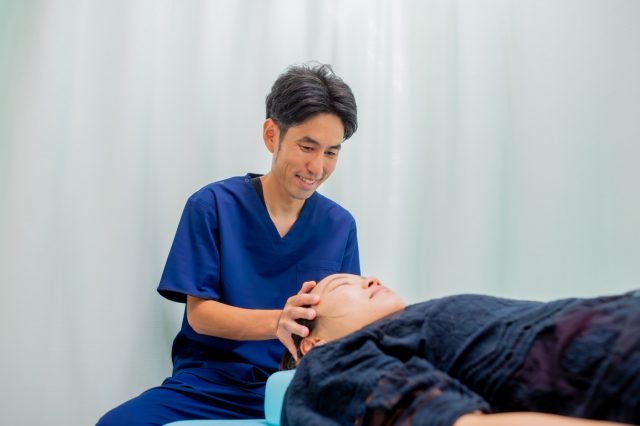 まずは頭蓋骨の調整を行います。